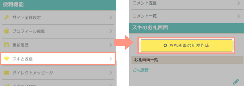 追加作成は「スキと返信」で、「お礼画面の新規作成」をご選択ください。