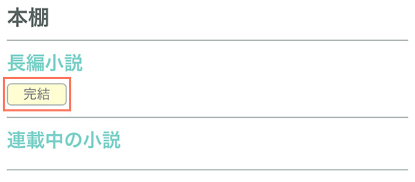 フォレストページ+では、各小説ごとに完結マークを設定し、本棚の小説一覧に表示することができます。